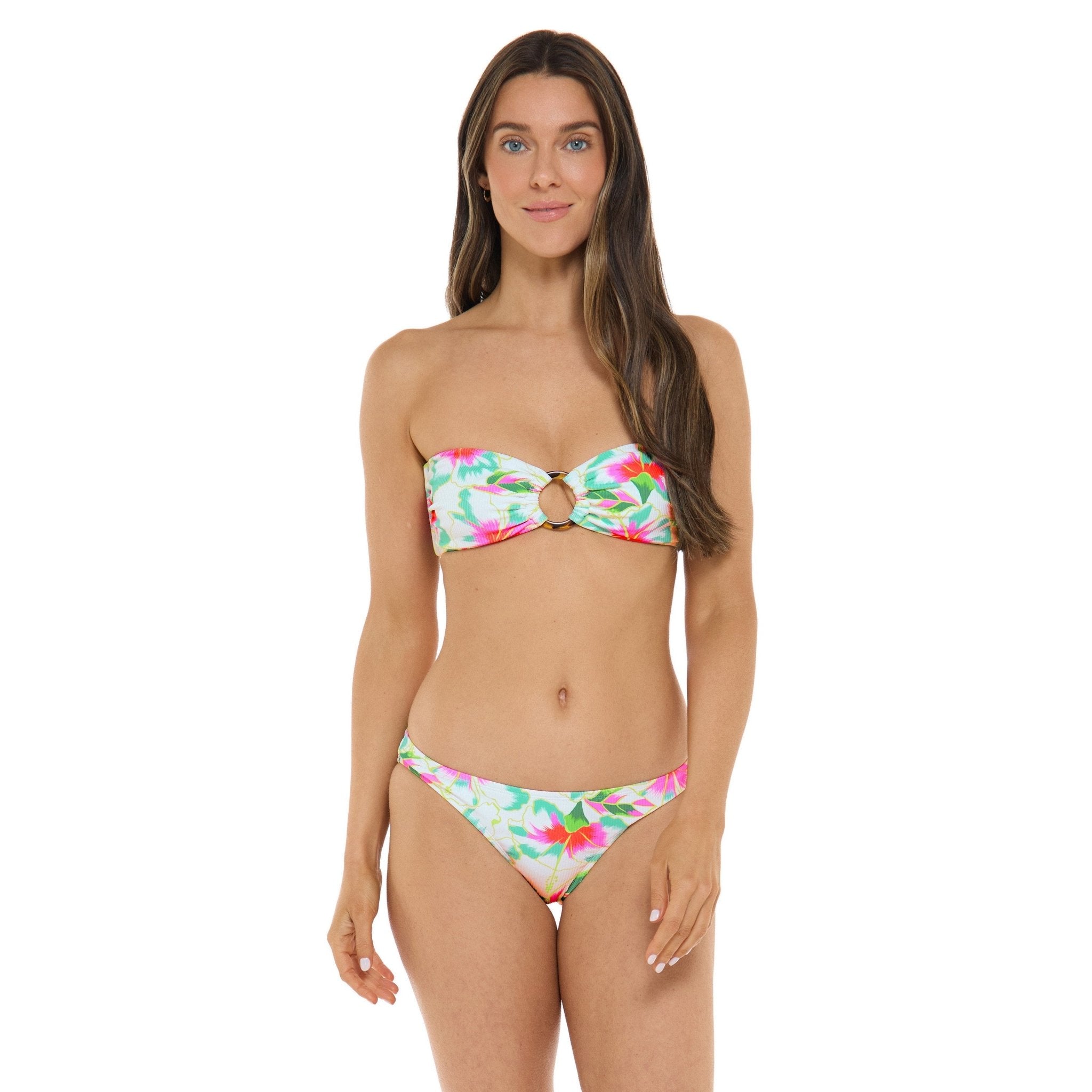 Get summer-ready with the Aria! It’s got a cute ring detail, removable soft cups for your comfort, and a sash tie back to make sure you get the perfect fit. Perfect for showing off your style at the beach or pool.